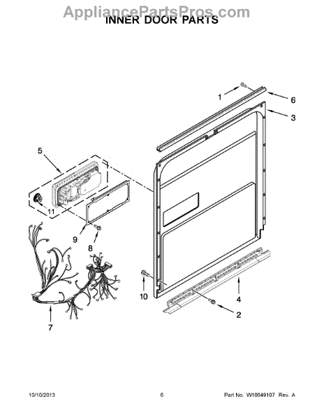 This inner door seal forms a moisture barrier between the dishwasher tub and the door assembly, helping keep wash water and steam contained. Replacing a worn seal can stop drips at the door and protect internal components.