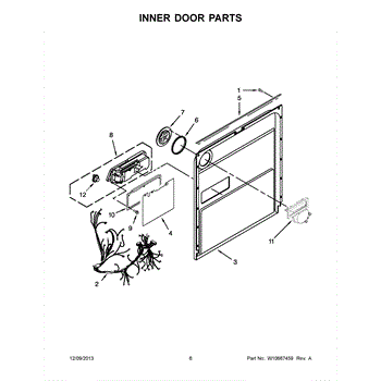 The Inner Door Panel is an OEM part for Whirlpool dishwashers. Located inside the dishwasher door, this hard-wearing panel protects internal components from impact during loading.