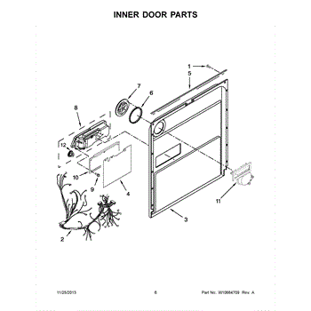 The Inner Door Panel is an OEM part for Whirlpool dishwashers. Located inside the dishwasher door, this hard-wearing panel protects internal components from impact during loading.