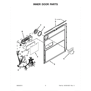 The Inner Door Panel is an OEM part for Whirlpool dishwashers. Located inside the dishwasher door, this hard-wearing panel protects internal components from impact during loading.