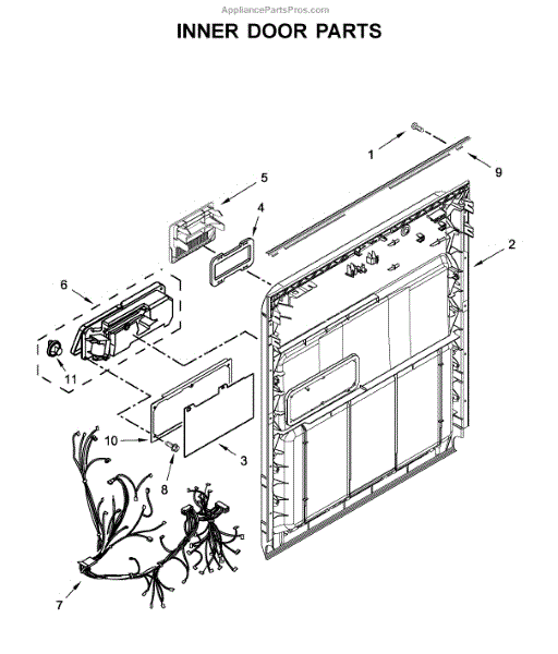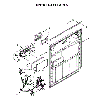 Replaces a cracked, dented, or damaged dishwasher inner door panel. Restores interior finish and provides the correct mounting surface for door hardware.