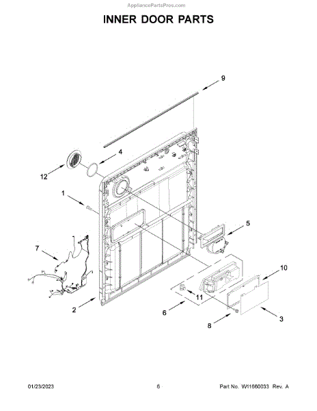 Replaces cracked, broken, or missing dishwasher inlet vent bezel. Covers the vent opening and restores exterior trim appearance on the door panel.