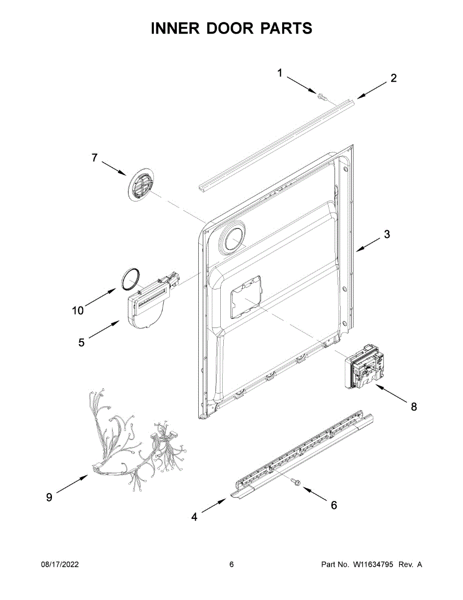 Rubber door seal creates a watertight barrier at the dishwasher door base. Replace when cracked, torn, or leaking water during cycles. Confirm fit with your model number before ordering.