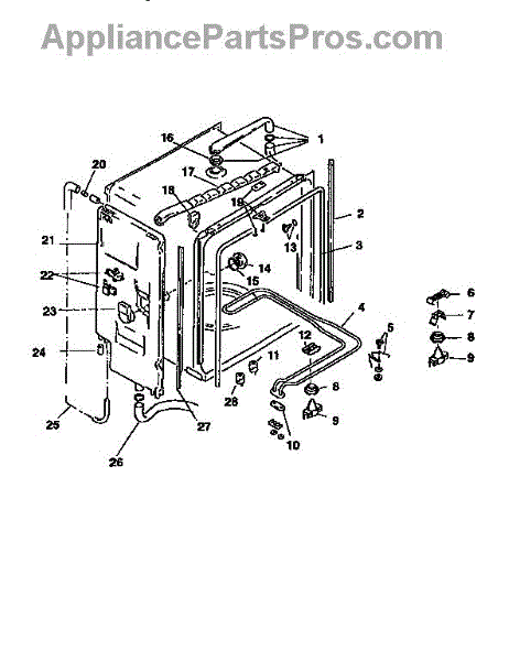 This inlet tube assembly routes incoming water from the dishwasher fill valve into the tub so the washer can fill and wash properly. Replaces a worn or cracked tube to stop leaks and restore normal fill behavior. What it does