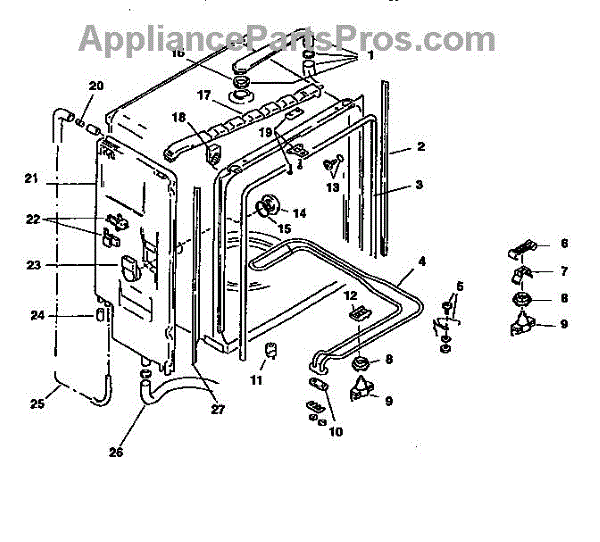 This inlet tube assembly routes incoming water from the dishwasher fill valve into the tub so the washer can fill and wash properly. Replaces a worn or cracked tube to stop leaks and restore normal fill behavior. What it does