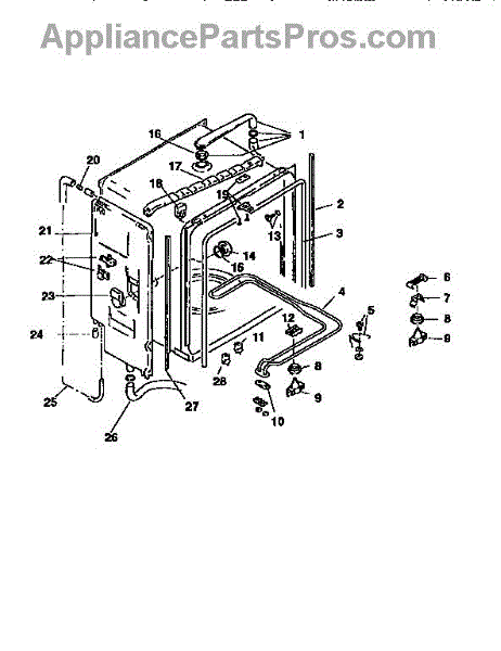 This inlet tube assembly routes incoming water from the dishwasher fill valve into the tub so the washer can fill and wash properly. Replaces a worn or cracked tube to stop leaks and restore normal fill behavior. What it does
