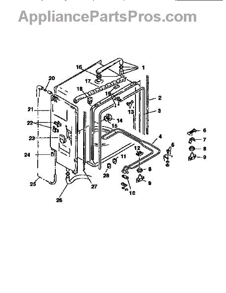 This inlet tube assembly routes incoming water from the dishwasher fill valve into the tub so the washer can fill and wash properly. Replaces a worn or cracked tube to stop leaks and restore normal fill behavior. What it does