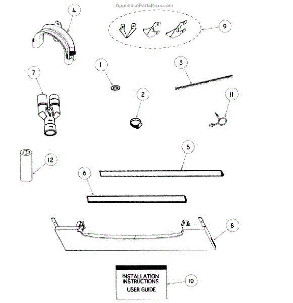 A replacement support drain hose that secures and positions the appliance drain hose to prevent kinks and improper routing. Keeps the drain line stable so wastewater flows freely and reduces strain on connections. What it does
