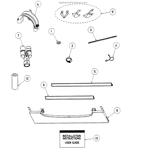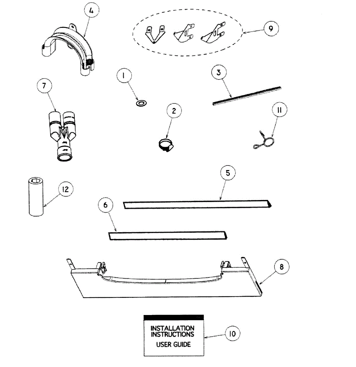 A replacement support drain hose that secures and positions the appliance drain hose to prevent kinks and improper routing. Keeps the drain line stable so wastewater flows freely and reduces strain on connections. What it does