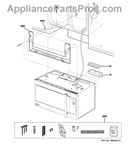 Complete mounting hardware kit for installing over-the-range microwaves. Includes brackets and fasteners to secure unit above cooktop. Replace missing or damaged parts.