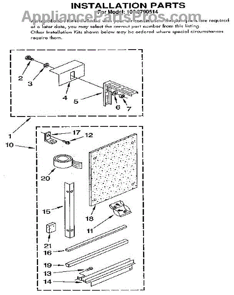 Parts for Kenmore 106.8790514 (1068790514, 106 8790514): Installation Parts