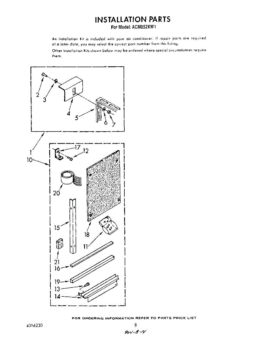 Parts for Whirlpool ACM052XW1: 06 - Installation Parts