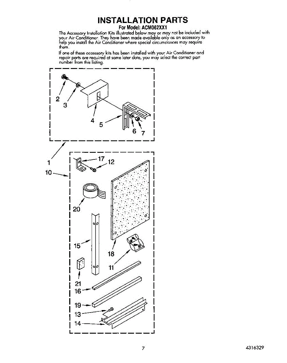 Parts for Whirlpool ACM062XX1: 05 - Installation Parts