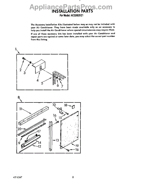 Parts for Whirlpool ACQ082XZ1: 06 - Installation Parts
