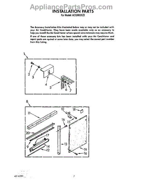 Parts for Whirlpool ACQ082XZ2: 05 - Installation, Literature Parts
