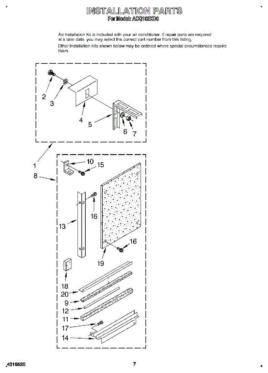 Parts for Whirlpool ACQ102XD0: 05 - Installation Parts