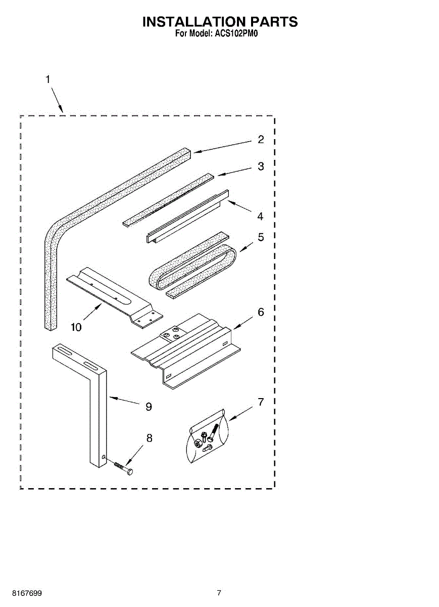 Parts for Whirlpool ACS102PM0: 04 - Installation Parts