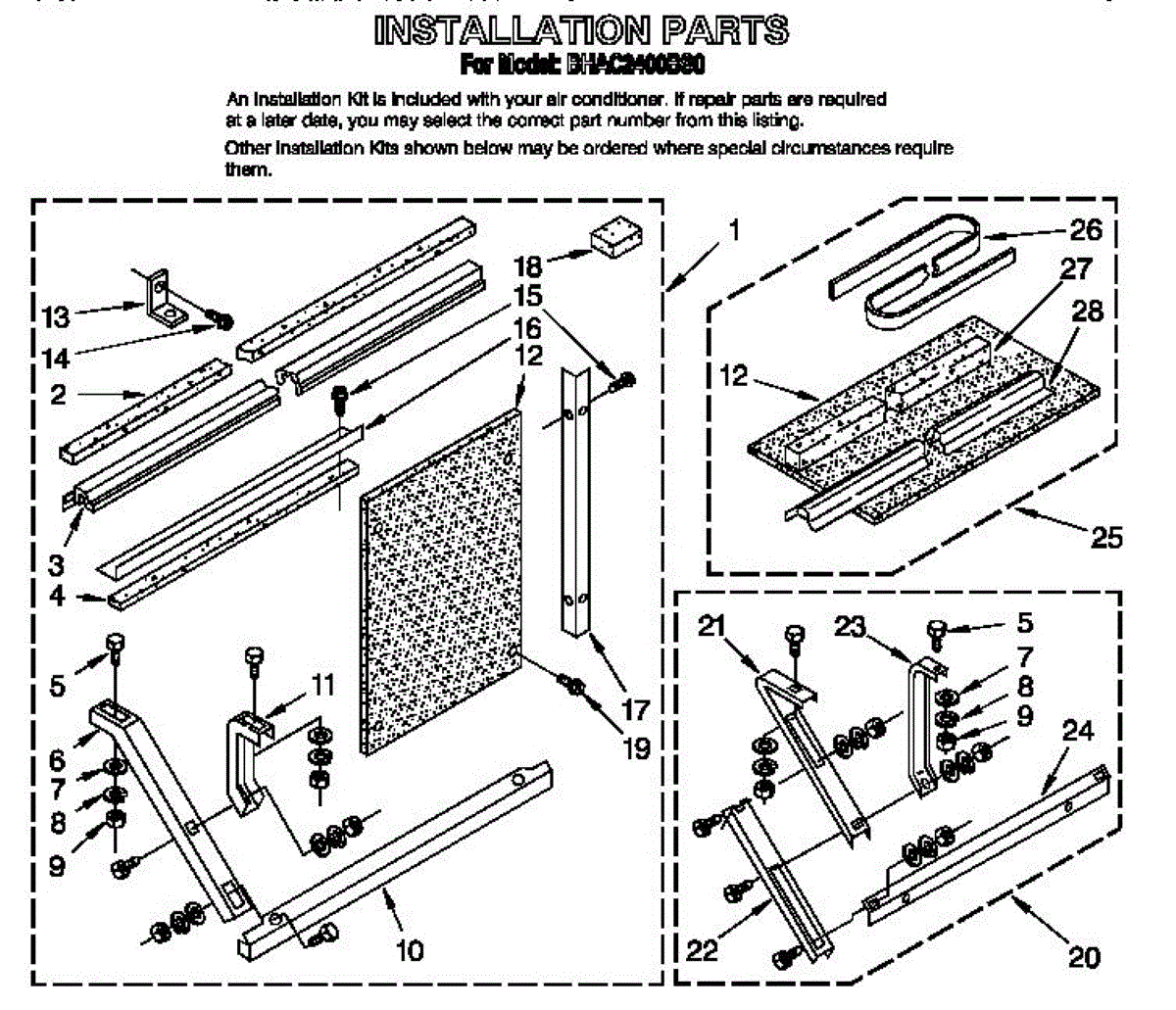 Parts for Whirlpool BHAC02400BS0: Installation Parts