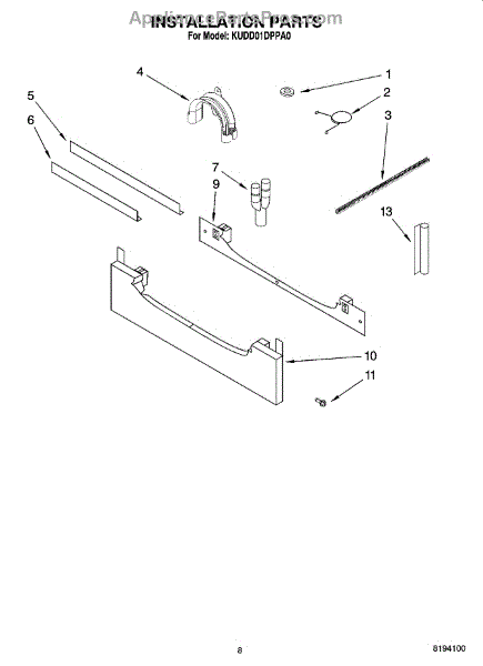 Parts for Kitchenaid KUDD01DPPA0: 07 - Installation Parts