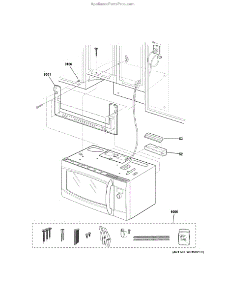 The Installation Hardware Kit is an OEM part for GE over-the-range microwaves. It contains brackets and fasteners used to securely mount the microwave above the range cooking surface.