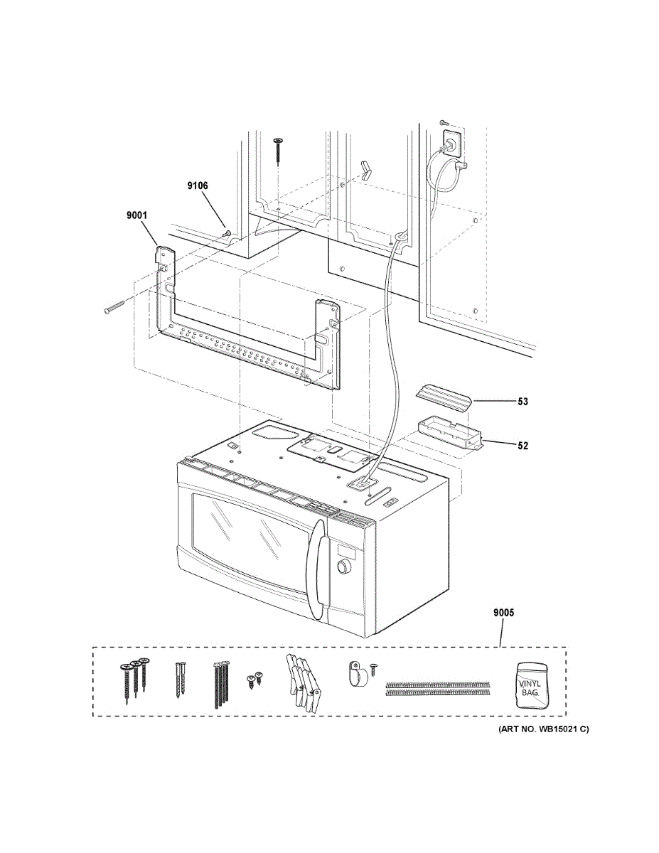 The Installation Hardware Kit is an OEM part for GE over-the-range microwaves. It contains brackets and fasteners used to securely mount the microwave above the range cooking surface.