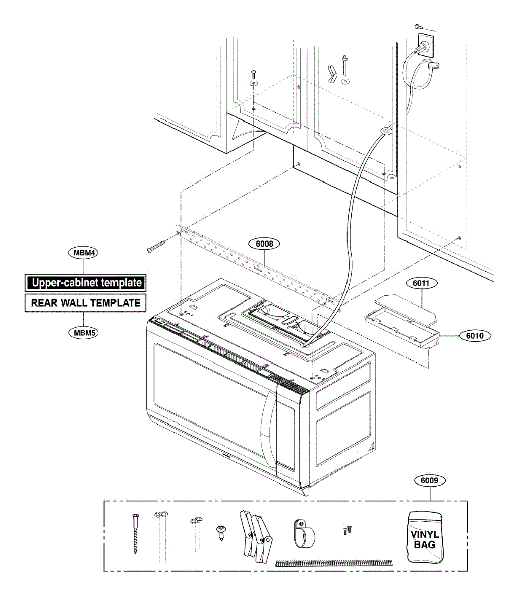 The Installation Hardware Kit is an OEM part for LG microwaves. It includes all the necessary mounting brackets, screws, and other hardware components required for a proper and secure installation of the microwave. This kit ensures a safe and stable fitment, whether the microwave is being installed over the range, built into cabinetry, or mounted on the wall.