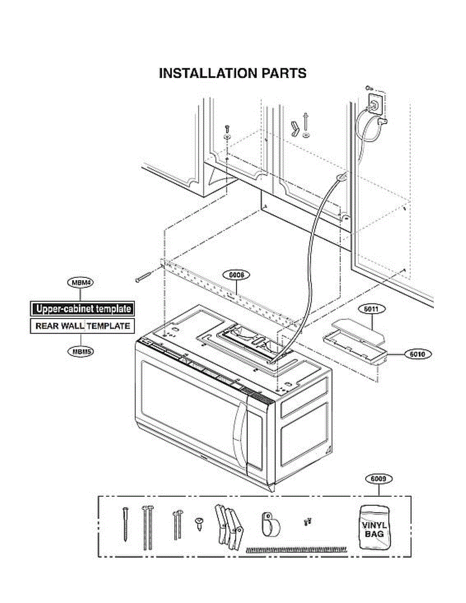 The Installation Hardware Kit is an OEM part for LG microwaves. It includes all the necessary mounting brackets, screws, and other hardware components required for a proper and secure installation of the microwave. This kit ensures a safe and stable fitment, whether the microwave is being installed over the range, built into cabinetry, or mounted on the wall.