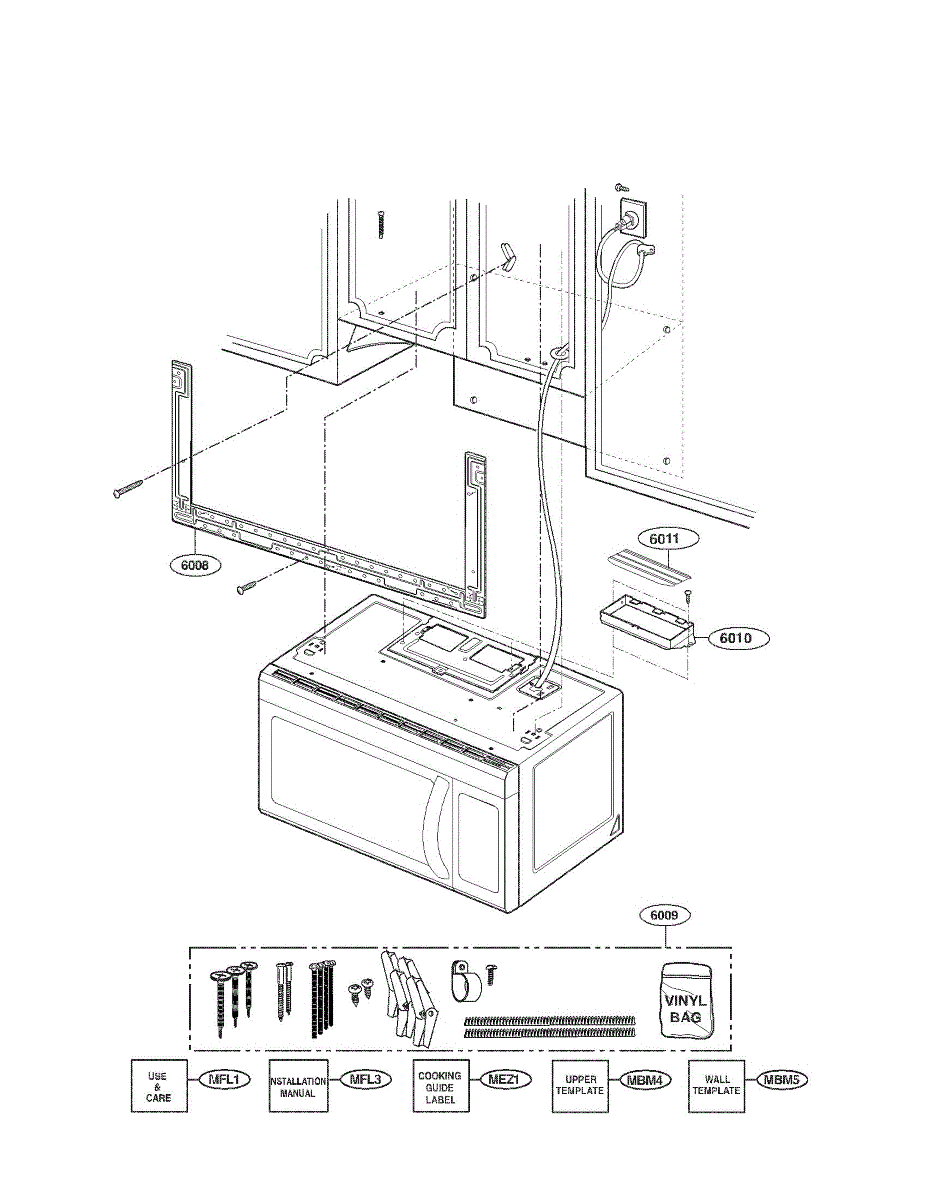 Metal mounting plate that secures the microwave chassis to the wall or cabinet. Replace if bracket is bent, cracked, or missing during installation.
