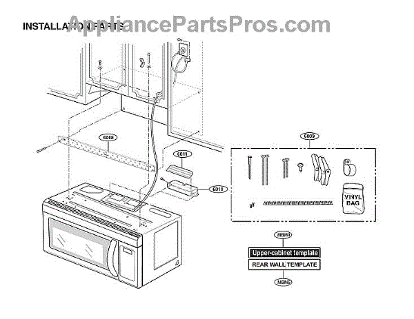 The Microwave Mounting Hardware Kit is an OEM part for LG microwaves. This kit contains all of the necessary hardware to properly mount and install an LG microwave. It ensures that the microwave is securely fastened to the cabinet or installed above the range.