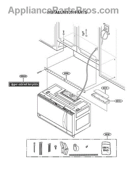 The Installation Hardware Kit is an OEM part for LG microwaves. It includes all the necessary mounting brackets, screws, and other hardware components required for a proper and secure installation of the microwave. This kit ensures a safe and stable fitment, whether the microwave is being installed over the range, built into cabinetry, or mounted on the wall.
