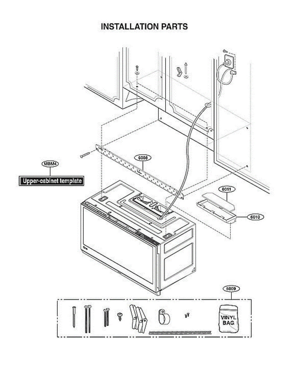 The Installation Hardware Kit is an OEM part for LG microwaves. It includes all the necessary mounting brackets, screws, and other hardware components required for a proper and secure installation of the microwave. This kit ensures a safe and stable fitment, whether the microwave is being installed over the range, built into cabinetry, or mounted on the wall.