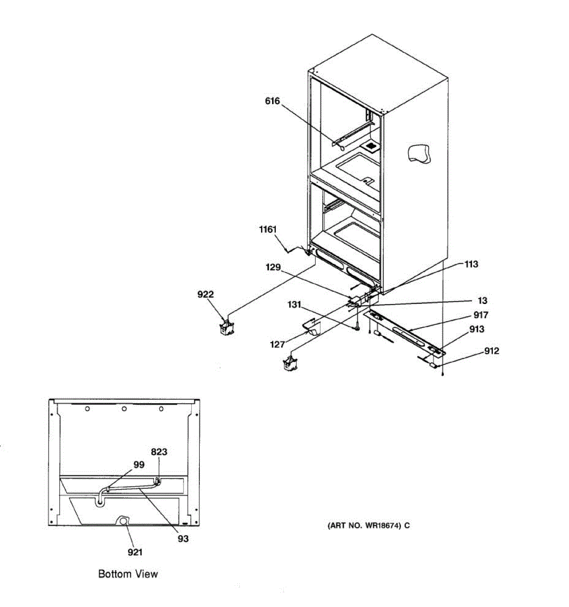 Bottom hinge mounting screw for refrigerators. Secures the lower door hinge to the cabinet. Replace if stripped, missing, or damaged during service.