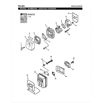 The intake gasket is designed to act as a seal between the cylinder head and the heat dam. It keeps the engine sealed and protected during use. Not only does this reduce the risk of damage to the engine on various lawn equipment units, but it eliminates potential leaks that could reduce engine power or performance and ensures maximum flow to the engine. Gaskets can become worn or damaged over time with regular use or they can break unexpectedly. This Echo gasket is made from compound material that is durable and designed to withstand the high heat inside of an engine. Use it to replace the gasket in compatible lawn equipment. This gasket is an OEM part that is designed to fit many Echo and Little Wonder lawn and garden equipment engines. There are more than 150 compatible models in total, including blowers, pumps, reciprocating saws, cultivators, edgers, and other saws. Check your user manual for compatibility and to see if there are any special replacement instructions to consider.