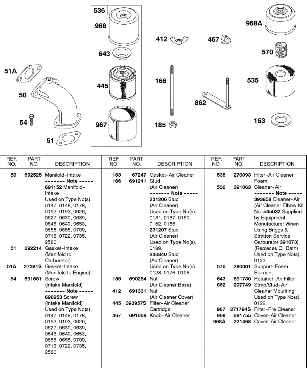 Parts for Briggs & Stratton 243431-0523-99: Intake Manifold, Air Cleaner Parts