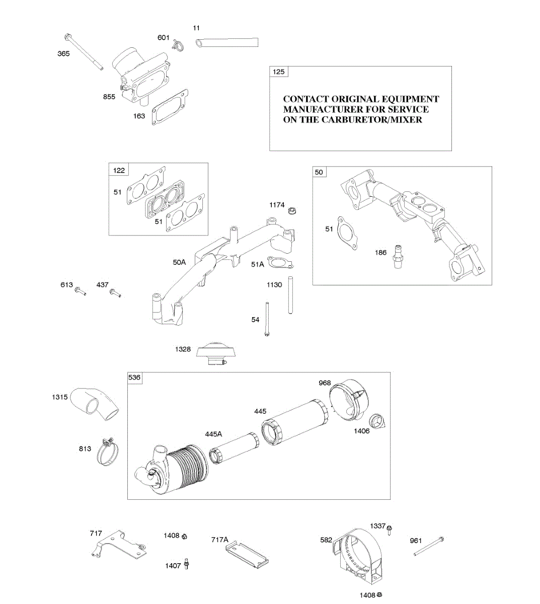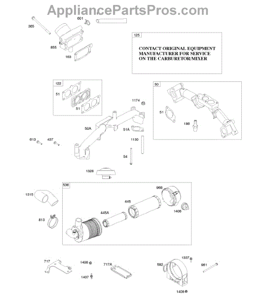 Parts for Briggs & Stratton 543577-0110-B1: Intake Manifold, Carburetor / Mixer, Air Cleaner Parts