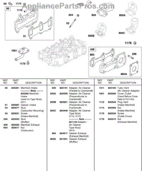 Parts for Briggs & Stratton 580447-0210-E2: Intake Manifold, Exhaust Manifold Parts