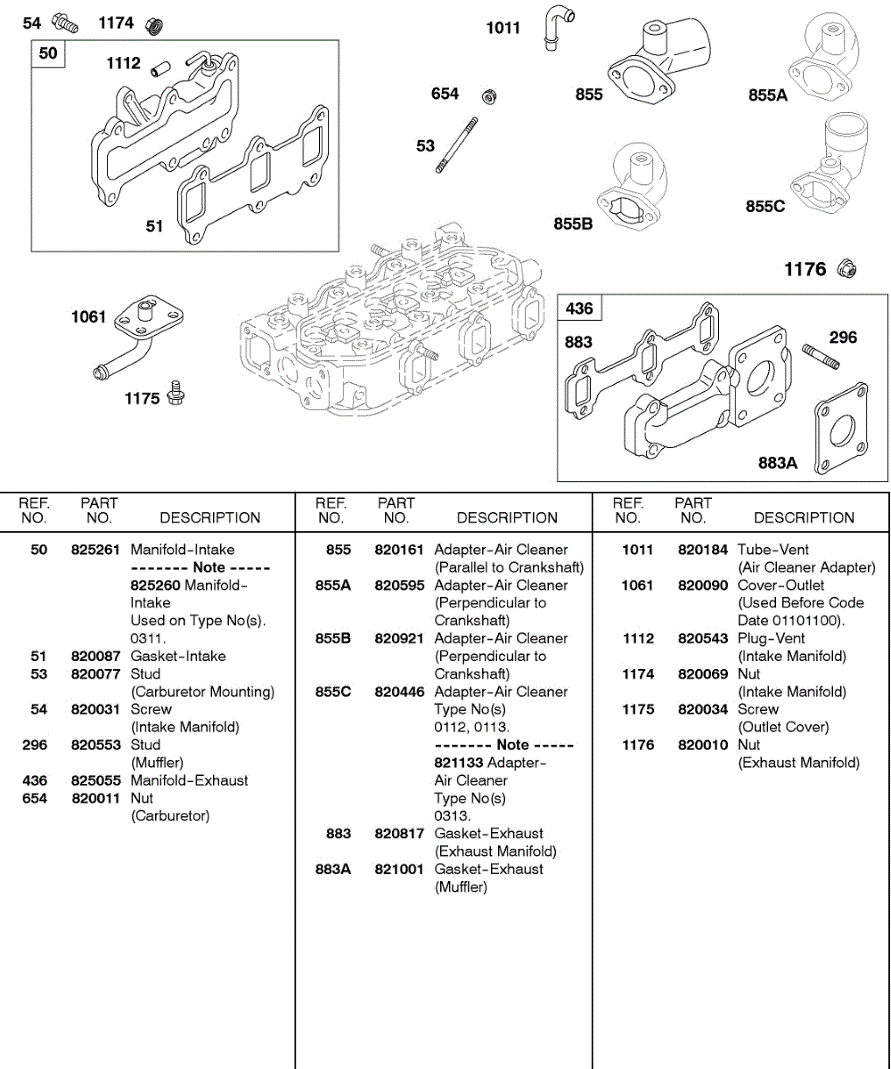Parts for Briggs & Stratton 580447-0333-E2: Intake Manifold, Exhaust Manifold Parts