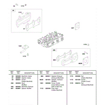 Parts for Briggs & Stratton 584447-0305-E2: Intake Manifold, Exhaust Manifold Parts