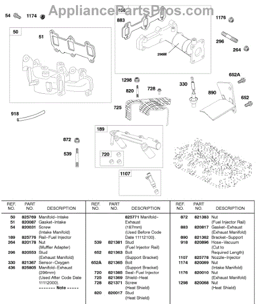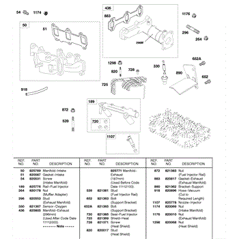 Parts for Briggs & Stratton 58E447-0411-E2: Intake Manifold, Exhaust Manifold, Fuel Injector Rail Parts