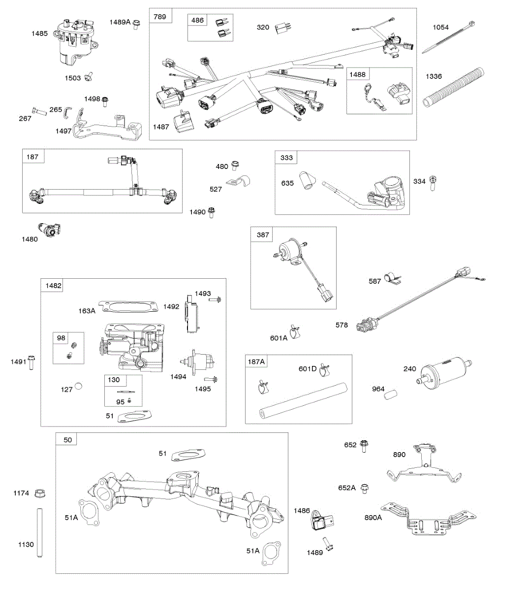 Parts for Briggs & Stratton 61E977-0001-J1: Intake Manifold, Throttle Body, Fuel Supply Parts