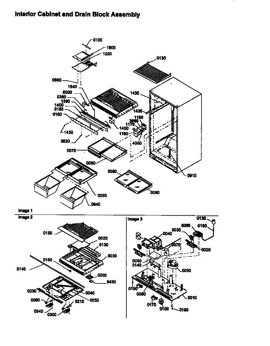Parts for Amana TH25TL-P1303001WL: Interior Cabinet And Drain Block Assembly Parts