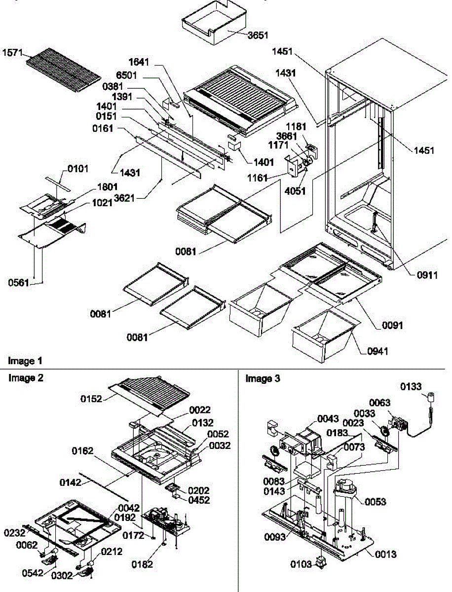 Parts for Amana THI18TE-P1310701WE: Interior Cabinet And Drain Block Assembly Parts