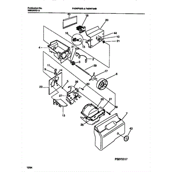 This auger motor powers the ice dispenser, rotating the ice-bin auger to feed cubes or crushed ice to the door chute. A failed motor stops dispensing, leaving ice in the bucket when the paddle or lever is pressed.