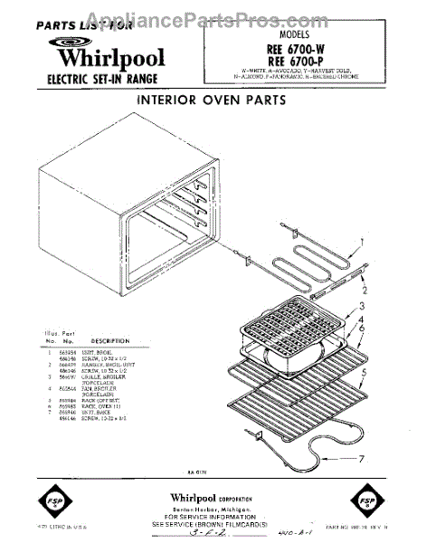 Parts for Whirlpool REE6700P: 01 - Interior Oven Parts
