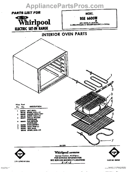 Parts for Whirlpool RGE6600W: 01 - Interior Oven Parts