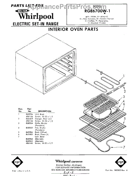 Parts for Whirlpool RGE6700W1: 01 - Interior Oven Parts