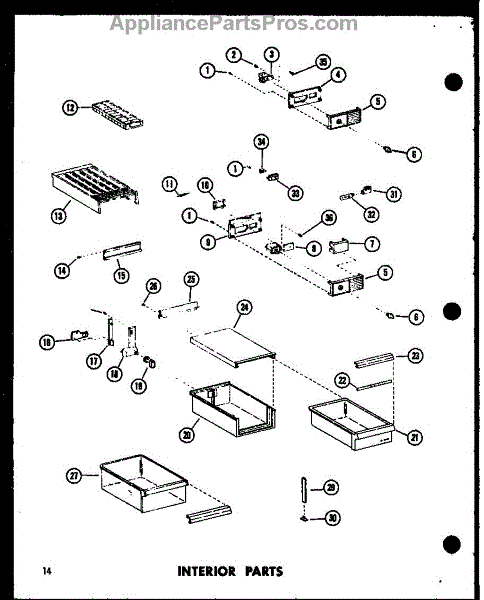 Parts for Amana TR18D-P73500-23W: Interior Parts (Ts18d / P73500-22W) (Tr18d / P73500-23W) (Etr18d / P73500-24W) (Tc18d / P73500-25W) (Tci18d / P73500-27W) (Tm18d / P73500-30W) (Tri18d / P73500-28W) Parts