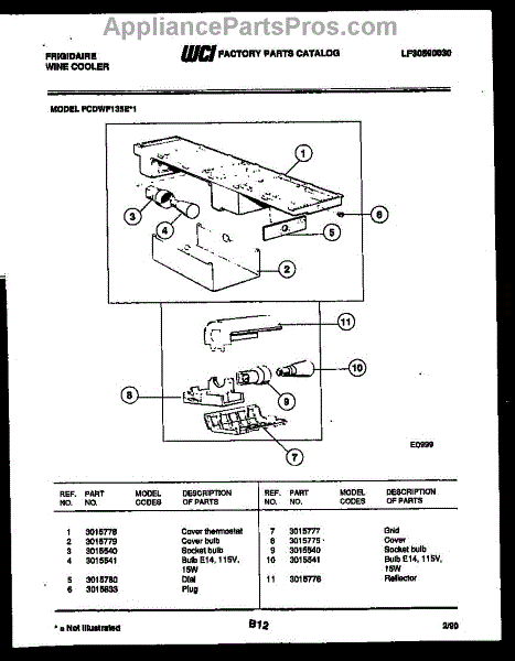 Parts for Frigidaire FCDWF135E1: 04 - Interior Parts