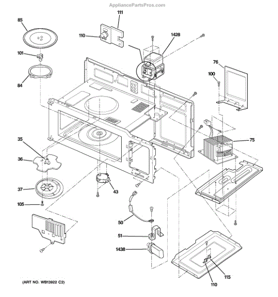 The Stirrer Fan Cover is an OEM replacement part for GE Microwaves. It is responsible for shielding internal mechanisms during operation.