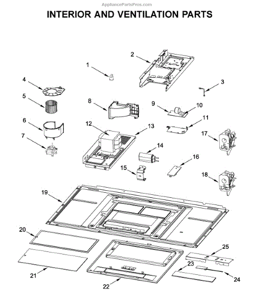 Interior reflector panel for microwaves. Installs inside the cooking cavity to protect internal components. Replace if cracked, discolored, or missing.